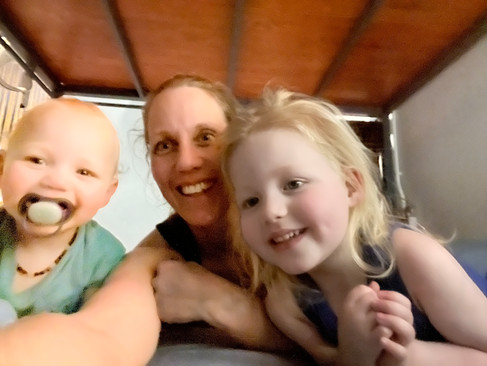 Nya lag gedrapeerd over haar eigen stoel en over Saab en Reva lag bij mij. Nya lag ietwat onhandig voor Saab, dus die heeft weinig geslapen, maar ik heb nog een paar uurtjes kunnen tukken.Ā